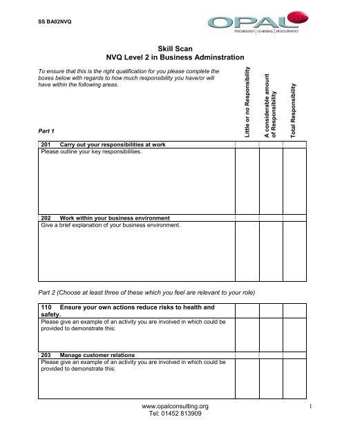 Skill Scan Nvq Level 2 In Business Adminstration Opal Consulting