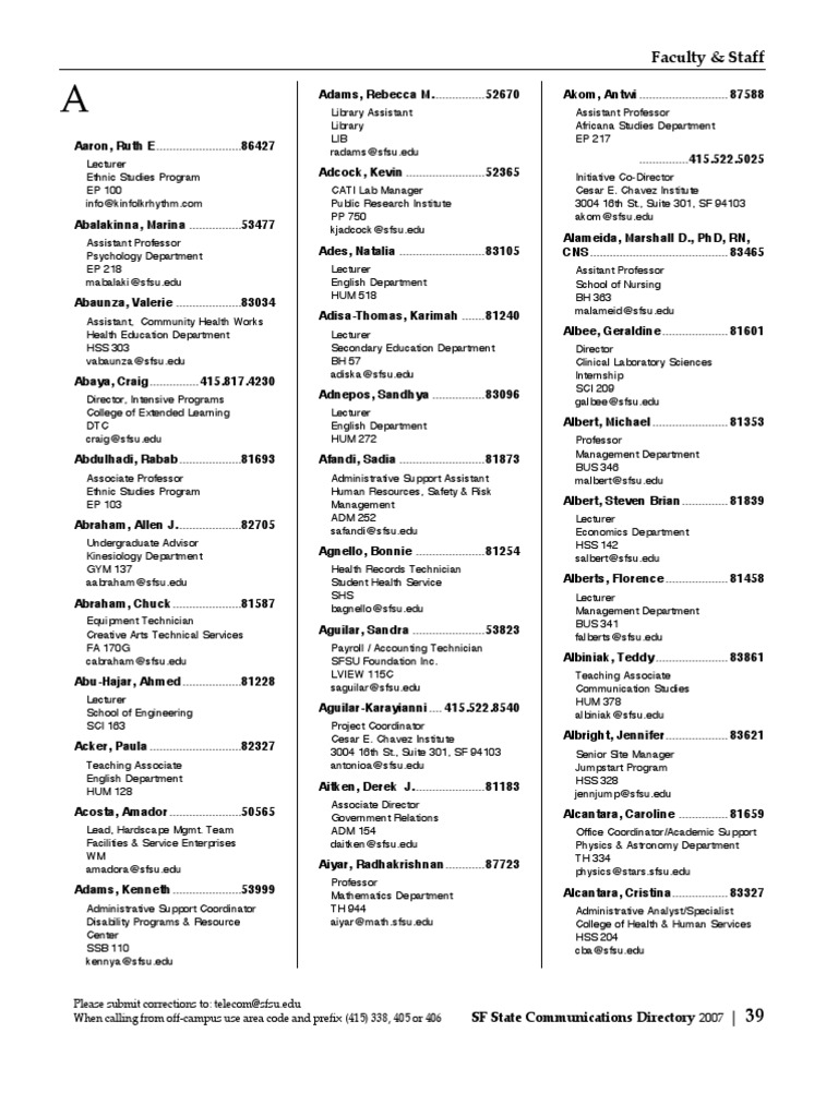 Sfsu Faculty And Staff Alphabetical Directory Lecturer Academia